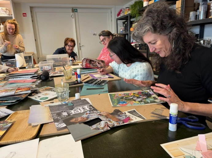Je hoeft hier niets te kunnen en je hoeft niets te bewijzen. De workshops zijn geen lessen en geen opleidingen, maar momenten waarop je mag proberen, spelen en ontdekken wat voor jou werkt. Het gaat niet om wat je maakt, maar om het bezig zijn zelf, om even uit je hoofd te komen en met je handen te werken. We werken in kleine groepjes, met maximaal acht mensen, in een rustige sfeer waar iedereen zijn eigen tempo mag volgen. Je mag iets proberen en weer loslaten, afwijken van wat voorgesteld wordt, prutsen, opnieuw beginnen of gewoon even kijken wat er ontstaat. Er is geen vergelijking met anderen en geen verwachting waaraan je moet voldoen.