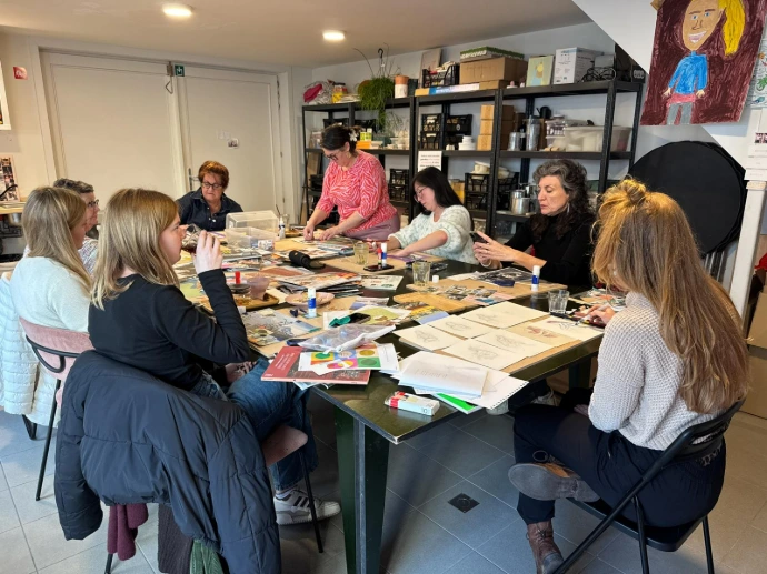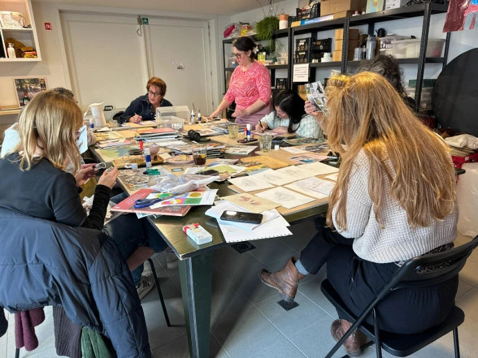 Naast de gewone tijdslots die je kan inboeken om zelfstandig in het atelier te werken, zijn er ook begeleide workshops. Deze workshops zijn bewust laagdrempelig opgezet en bedoeld voor mensen die graag creatief bezig zijn, maar zichzelf daar vaak in tegenhouden omdat ze denken dat ze niet creatief genoeg zijn of dat ze het niet goed zullen doen.
