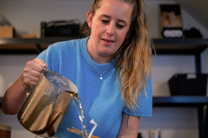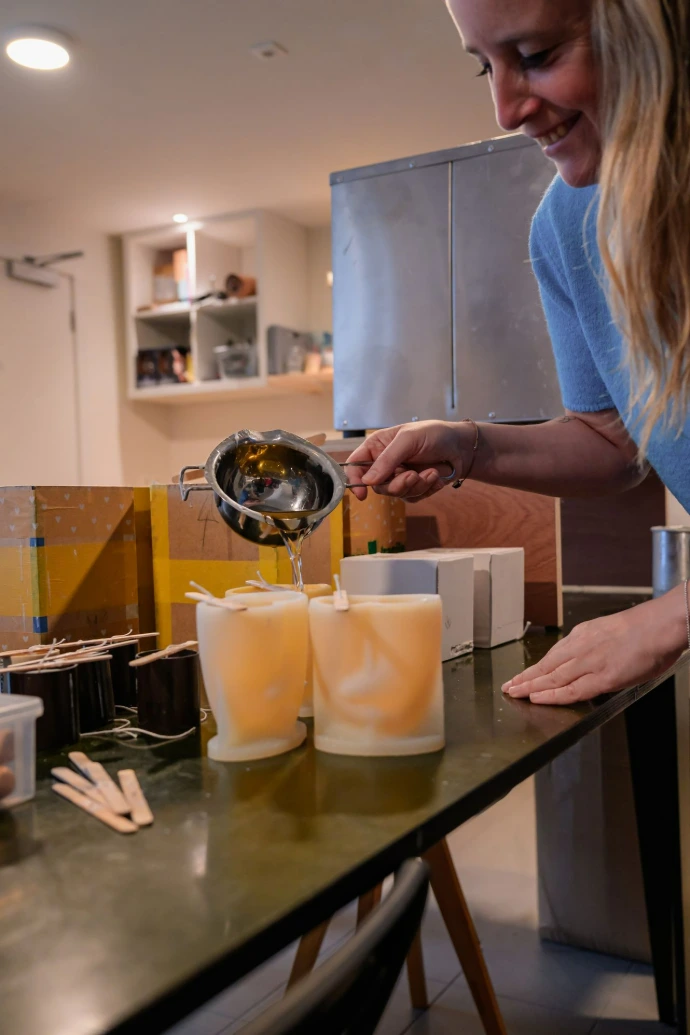 Alle kaarsen zijn gemaakt in ons kaarsenatelier in Brugge. Ze zijn gemaakt van koolzaadwas, wat de meest ecologische optie is in Europa. Ook voor het verzenden proberen we zoveel als we kunnen, dozen te hergebruiken om ons steentje bij te dragen. En voor het inpakken, doosjes in elkaar steken, stickers plakken en bubbelplastiek knippen krijgen we hulp van de lieve mensen van de dagbesteding van Oranje.