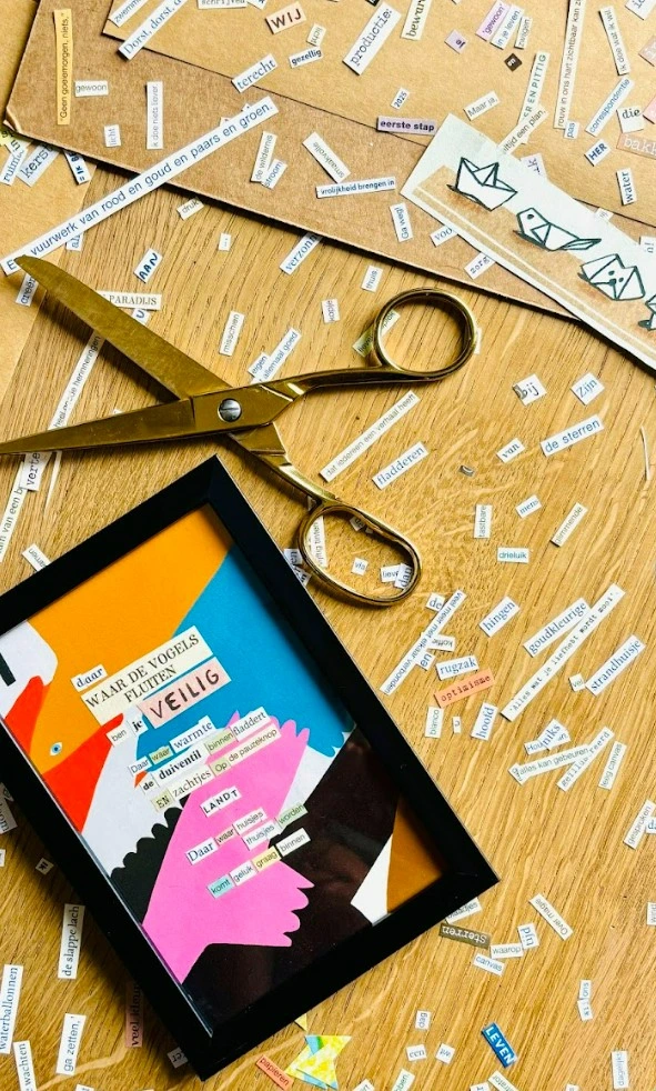 Zet samen met Ann-Eline van Lettergekletter de wereld even op pauze. Duik met schaar in de hand in je eigen letterland en plak poëtisch beeldende verhalen om in te verdwalen. Je gaat naar huis met je eigen ingekaderd knipselkunstwerkje. Ervaring is niet nodig, alleen 'goesting' om te creëren en experimenteren! Meer info over Lettergekletter via www.lettergekletter.be of via Instagram/Facebook.