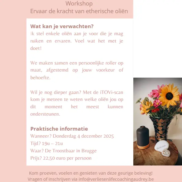 Let op! Inschrijven via info@verliesenlifecoachingaudrey.be